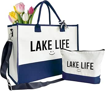 شنطة يد كبيرة توت قماشية للنساء من ار دي اي جيه اكس جي في ال، هدايا منزل البحيرة، شنطة توت قماشية للنساء، شنطة مستحضرات التجميل، شنطة يد للسفر من القماش مع سحاب، هدية عيد الام والكريسماس، A61