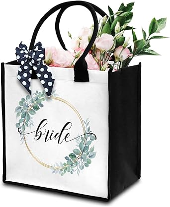 شنطة يد كبيرة توت للعروس للنساء، شنطة يد كبيرة توت قماشية لحفلات الزفاف وحفلات توديع العزوبية مع شريط، شنطة يد كبيرة توت للعروس وشهر العسل والاصدقاء – 10