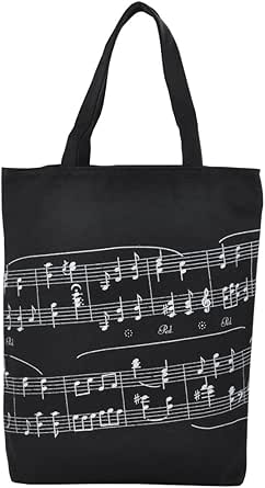 شنط بقالة قابلة لاعادة الاستخدام بنمط موسيقي من هيلربانك، شنطة كتف من القطن السميك مثالية للتسوق والتخزين (شنطة حمل للتدوين الموسيقي)، شنطة حمل للتدوين الموسيقي