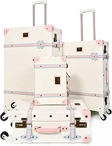 شنط سفر كلاسيكية من الجلد من مورانو، 4 قطع مع عجلات دوارة وقفل امان (بيج/بينك)