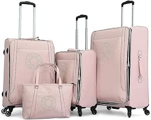 شنط سفر مرنة مزودة بعجلات من جيس، مجموعة من 3 قطع، شنطة كتف للنساء، وردي