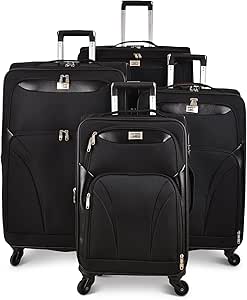 - مجموعة حقائب سفر من نيو ترافيل مكونة من 4 قطع ومصنوعة من قماش البوليستر مما يجعلها مرنة ومقاومة للخدوش وخفيفة الوزن ومتينة. مع الأخذ في الاعتبار وزنها الخفيف للغاية، فإن السفر أصبح ممتع. يضمن التصميم خفيف الوزن والقوي الاستخدام والأمان على المدى الطويل. تبدو أمتعتك أنيقة بسبب تصميمها ولونها الجذاب.