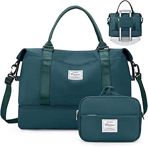 - 【شنطة سفر مع مساحة تخزين للأحذية وحقيبة أدوات الزينة】تحتوي شنط السفر للنساء على مساحة منفصلة في الأسفل للأحذية والملابس المتسخة. مثالي للاستخدام اليومي أو صالة الألعاب الرياضية أو الإقامة الليلية أو للحمل أثناء الحمل. تأتي حقيبة السفر من القماش الخشن مع حقيبة أدوات الزينة/مستحضرات التجميل، مريحة للأشخاص الذين يحبون السفر. حجم حقيبة أدوات الزينة: 24*7.5*16.5 سم/9.4*3*6.1 انش.