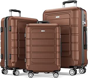 شوكوو مجموعة شنط سفر متينة قابلة للتوسيع من البولي كربونات + ABS بعجلات مزدوجة وقفل تي اس ايه 3 قطع بني حقائب السفر