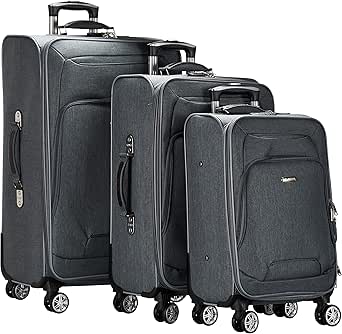 طقم مكون من 3 قطع شنط سفر سوفت سايد مزودة بعجلات دوارة للجنسين من النترا باللون الأسود، بوليستر