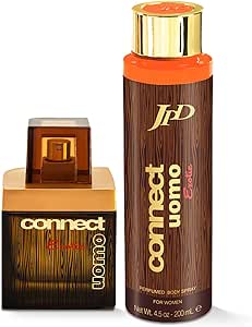 تتضمن عبوة عطر كونكت اومو اكزوتيك الترويجية من جيه بي دي 1× بخاخ كونكت اومو اكزوتيك او دي تواليت 100 مل و1 × بخاخ للجسم كونكت اومو اكزوتيك 200 مل. بخاخ عطر اومو اكزوتيك او دي تواليت من يه بي دي هو عطر جذاب وحيوي يجمع بين روائح الفواكه والزهور. هذا العطر مثالي للرجل الذي يتنقل دائمًا. الروائح الأولية هي التفاح والفواكه والليمون واليوسفي والروائح الوسطى هي العود والروائح القاعدية هي العنبر والمسك والخشب والباتشولي. مثالي للاستخدام اليومي أو أي مناسبة.