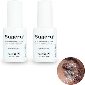 غراء جلد لامع للتاتو اللامع من سوجيرو، عبوة من قطعتين (10 مل) – غراء لامع لبشرة الوجه – خفيف ولا يسبب التهيج – مناسب للكرنفالات والحفلات وطلاء الوجه والهالوين ولعب الادوار