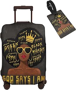 غطاء حماية لحقائب السفر من نيو لايف بتصميم فتاة أمريكية أفريقية غطاء مرن قابل للغسل مع سحاب مخفي مناسب لـ 45.72 سم – 81.28 سم -M, الله سايز أسود النساء, Large