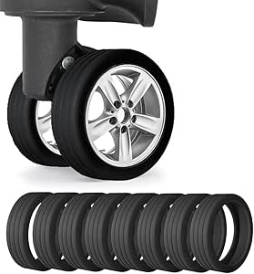 • حماية فائقة: احمِ عجلات أمتعتك من الخدوش والتلف مع واقيات السيليكون الآمنة غذائيًا، مما يضمن أن أمتعتك خالية من العيوب دائمًا.