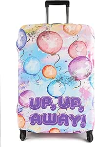غطاء واقي لشنط السفر من ناتونات، غطاء شنطة سفر بنمط ملون مصنوع من بوليستر وسباندكس قابل للغسل والتمدد، يحمي من الأوساخ والخدوش، تصميم عبارة UP UP – يناسب شنطة مقاس 25-28 سم