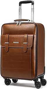 فيلاريو شنطة سفر بعجلات دوارة للاعمال مصنوعة من جلد PVC المقاوم للماء مع مقبض من خليط معدني من الالومنيوم مع قفل تي اس ايه (لون بني، 20 انش)