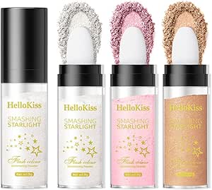 قلم بودرة هايلايتر بولفو دي هاداس ماكيلاج، أحمر خدود عالي اللمعان وبودرة كونتور لامعة للشعر والوجه والعينين والجسم من هوفيسيا، مجموعة من 3 قطع