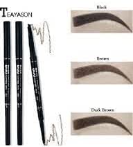 قلم حواجب مزدوج الرأس من تياسون، طلاء طبيعي مقاوم للماء يدوم طويلاً، قلم حواجب أسود وبني مع فرشاة.