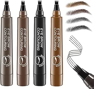 قلم حواجب مقاوم للماء من الميكاكوز – قلم حواجب بني داكن، قلم حواجب طويل الامد بـ 4 اطراف للنساء لتشكيل وتعبئة الحواجب، قلم تاتو لتحديد الحواجب، قلم تحديد الحواجب مقاوم للتلطخ لمدة 24 ساعة