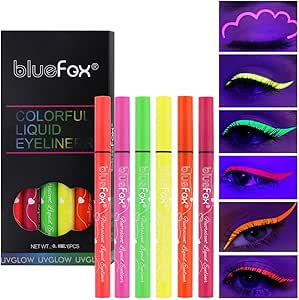 مجموعة اقلام تحديد العين المتوهجة بالاشعة فوق البنفسجية، 6 قطع من قلم تحديد العيون السائل بالوان قوس قزح فلورسنس، قلم تحديد عيون نيون ملون يدوم طويلا، مكياج طلاء للوجه والجسم مقاوم للماء للهالوين والحفلات
