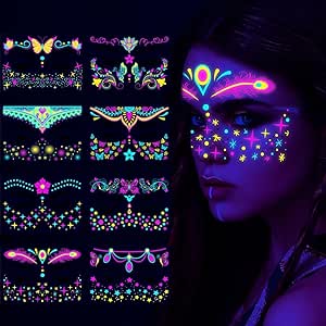 - 【مثالية لأي مناسبة】سواء كانت حفلة تنكرية أو حفلة موسيقية أو ليلة مع الأصدقاء، فإن تاتو الوجه المتوهج بالأشعة فوق البنفسجية والنيون الخاص بنا هو الإكسسوار المثالي لإكمال مظهرك.