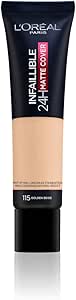 كريم أساس انفاليبل غير لامع 24 ساعة من لوريال باريس 115 بيج ذهبي