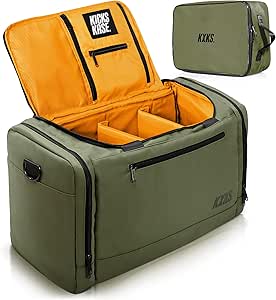 كيه اكس كيه اس. (كيكس كيس) حقيبة رياضية فاخرة وحقيبة دفل للسفر – 3 فواصل مقصورات قابلة للتعديل – للأحذية والملابس وصالة الألعاب الرياضية (اخضر قتالي/برتقالي)، نايلون