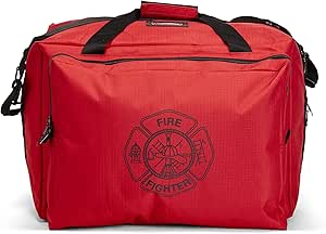 - تحتوي حقيبة رجال الإطفاء على مساحة تخزين رئيسية كبيرة جدًا، وجيبين كبيرين بسحاب للتخزين على كل جانب من جوانب الحقيبة