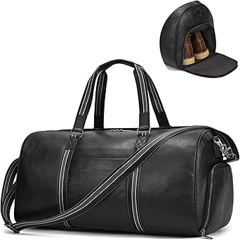 لوفان شنطة سفر من الجلد الطبيعي بسعة كبيرة، شنطة دفل مقاومة للماء مع جيب للحذاء، شنطة كتف لعطلة نهاية الاسبوع للرجال والنساء في العطلات ورحلات العمل، اسود، L، شنطة امتعة