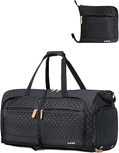 ليكي سكاي شنطة سفر للنساء قابلة للطي بسعة 80 لتر، شنطة رياضية لعطلة نهاية الاسبوع مع جيب للحذاء، شنطة امتعة يد مقاومة للماء، شنطة رياضية، شنطة مستشفى (اسود)، البوليستر