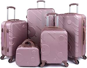 ليمرا مجموعة شنط سفر بعجلات بجوانب صلبة مكونة من 5 قطع بلون ذهبي وردي