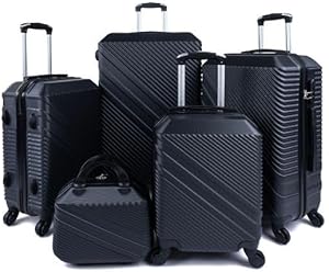 ليمرا مجموعة شنط سفر بعجلات مكونة من 5 قطع صلبة بلون اسود، أكريلونيتريل بوتادين ستايرين (ABS)
