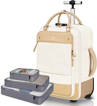 ماتين شنطة ظهر للابتوب بعجلات للنساء، شنطة لابتوب 17 انش كبيرة 40 لتر معتمدة من ادارة امن المواصلات الامريكية للسفر مع 3 مكعبات التعبئة، شنطة كمبيوتر دوارة مضادة للسرقة للعمل والسفر، بيج