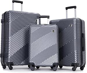 مجموعة حقائب سفر 3 قطع من تريب كومب، مجموعة شنط سفر صلبة بعجلات دوارة، خفيفة الوزن للرجال والنساء (20/24/28) (رمادي)، أكريلونيتريل بوتادين ستايرين (ABS)
