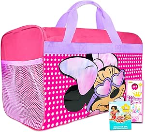 - تتضمن مجموعة أنشطة السفر ميني ماوس هذه حقيبة دفل ميني ماوس مقاس 17 انش × 10 انش × 11 انش، رائعة للحمل في الأمتعة أو حفلات النوم، مع تصميمات ميني ماوس الرائعة.