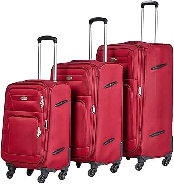 مجموعة شنط سفر بطبقة خارجية ناعمة مكونة من 3 قطع للجنسين باربع عجلات من تيك اوف، لون نبيتي، بوليستر، كستنائي