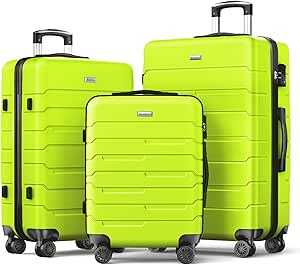 مجموعة شنط سفر خفيفة الوزن مقاس 20/24/28 انش مع عجلات دوارة مزدوجة وقفل تي اس ايه من سترينفورس، لون اخضر تفاحي، أكريلونيتريل بوتادين ستايرين (ABS)