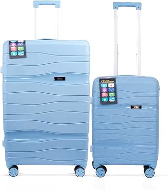 مجموعة شنط سفر فياجيرو مكونة من قطعتين من ام ان يو كيه | مصنوعة من مادة البولي بروبيلين صلبة وناعمة ومريحة مع قفل تي اس ايه | عجلات مزدوجة 360 درجة | مقصورة، مقاس L، ازرق