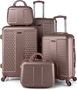 مجموعة شنط سفر متينة من نيو ترافيل مكونة 5 قطع مقاس 28 24 20 14 12 انش طراز CS005 5P ذهبي أكريلونيتريل بوتادين ستايرين ABS