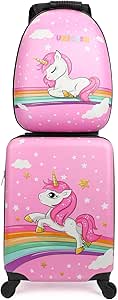 - 【هدية مثالية لأطفالك】مع حجم الأمتعة 30 × 21 × 46 سم (الطول × العرض × الارتفاع) وحجم حقيبة الظهر 29 × 14 × 32 سم (الطول × العرض × الارتفاع)، توفر مساحة واسعة للأطفال لوضع الملابس والكتب والألعاب وغيرها من الأشياء الشخصية. توجد جيوب داخلية في مجموعة الأمتعة لتسهيل تخزين وتصنيف مستلزمات السفر. تصميم بسحاب ثنائي الاتجاه يجعل من السهل فتح وإغلاق الأمتعة.