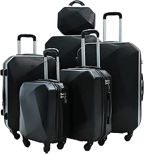 مجموعة شنط سفر مزودة بعجلات من مورانو 6 قطع – لون اسود أكريلونيتريل بوتادين ستايرين ABS