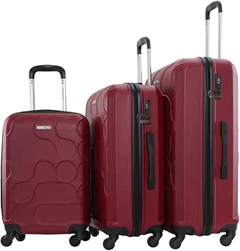 طقم حقائب سفر من 3 قطع بجوانب صلبة من مادة ABS مقاس 20/24/28 انش، لون احمر نبيذي