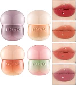 ملمع شفاه ملون على شكل فطر من 4 قطع، ملون شفاه جيلي مرطب يدوم طويلا، قوام جيلي مرطب شفاه بلوط، يرطب ويفتح خطوط الشفاه، سهل الحمل