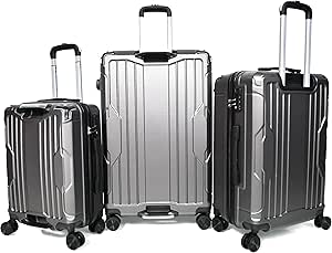 مورانو طقم حقائب سفر من 3 قطع Abs 4 عجلات 20.24.28 انش رمادي أكريلونيتريل بوتادين ستايرين