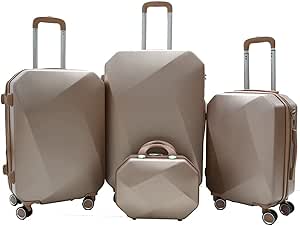 مورانو مجموعة حقائب سفر بعجلات دوارة وجوانب صلبة من مادة ABS مكونة من 4 قطع بلون ذهبي وردي