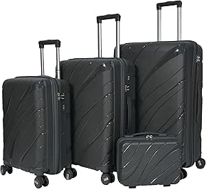 مورانو مجموعة شنط سفر بجوانب صلبة للجنسين من البولي بروبلين خفيفة الوزن 4 عجلات مزدوجة مع قفل مدمج من نوع تي اس ايه (مجموعة من 4 قطع) (فضي)