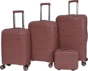 مورانو مجموعة شنط سفر بجوانب صلبة للجنسين من البولي بروبيلين خفيفة الوزن بـ 4 عجلات مزدوجة مع قفل مدمج نوع تي اس ايه قطع ازرق سيان ذهبي وردي بوليستر