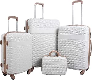 مورانو مجموعة شنط سفر بعجلات مكونة من 4 قطع – ابيض وبيج خاص، بولي كربونات (PC)