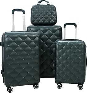 مورانو مجموعة شنط سفر بعجلات وجوانب صلبة مكونة من 4 قطع بلون اخضر داكن، بوليستر