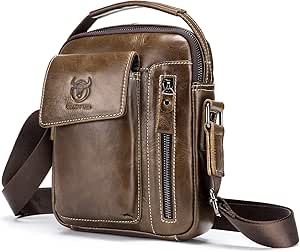 موريليان شنطة كتف جلدية للرجال شنطة كروس شنطة يد كاجوال للسفر والرياضة في الهواء الطلق، بني غامق