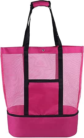 موونت شنطة شاطئ شبكية كبيرة، شنطة شاطئ شبكية مع جيب معزول، خفيفة الوزن وقابلة للطي، شنطة تخزين العاب الشاطئ سريعة الجفاف للنزهات والسفر والتسوق وصالة الالعاب الرياضية