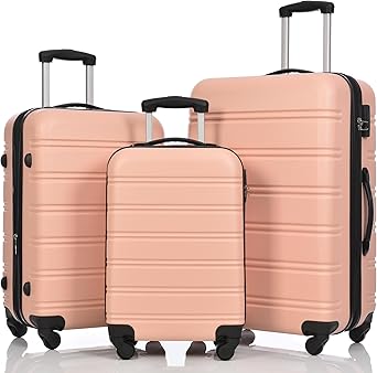 ميراكس مجموعة شنط سفر من 3 قطع، شنط سفر بهيكل صلب، مصنوعة من مادة ABS، شنطة سفر خفيفة الوزن، شنطة يد قابلة للتوسيع، 4 عجلات، M-L-XL، زهري، مجموعة من 3 قطع