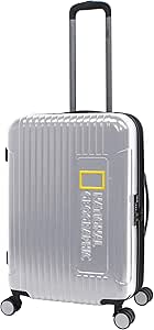 ناشونال جيوجرافيك شنطة سفر صلبة متوسطة الحجم مصنوعة من بلاستيك ABS والبولي كربونات من كانيون بلون فضي، متينة وخفيفة الوزن وقابلة للتوسيع ومزودة بسحاب مضاد للسرقة وقفل تي اس ايه مع 4 عجلات مزدوجة (60