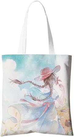 YiLn 2 قطعة قماش حمل حقيبة للمرأة، حقيبة البقالة، حقائب لطيفة، حقيبة تسوق من القطن المطبوع، أكياس الهدايا، وصيفات الشرف حقائب حمل حقيبة كتب، A
