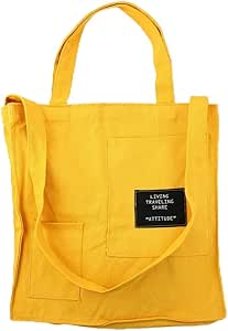 ZHuidjo السفر طلاب المدرسة كتب التجميل حامل الكمبيوتر المحمول حقيبة يد قابلة لإعادة الاستخدام حقيبة يد واحدة قماش حمل أصفر (SN: 47b b79 0a3 b6b 1f9)